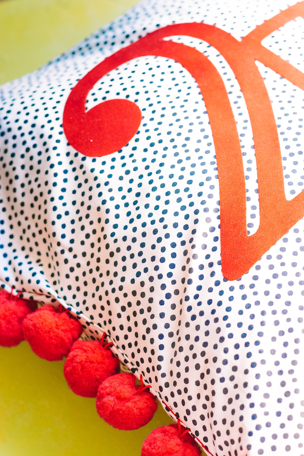 - Joyful Pillow with Pom Poms by Natalie at DoodleCraft Blog