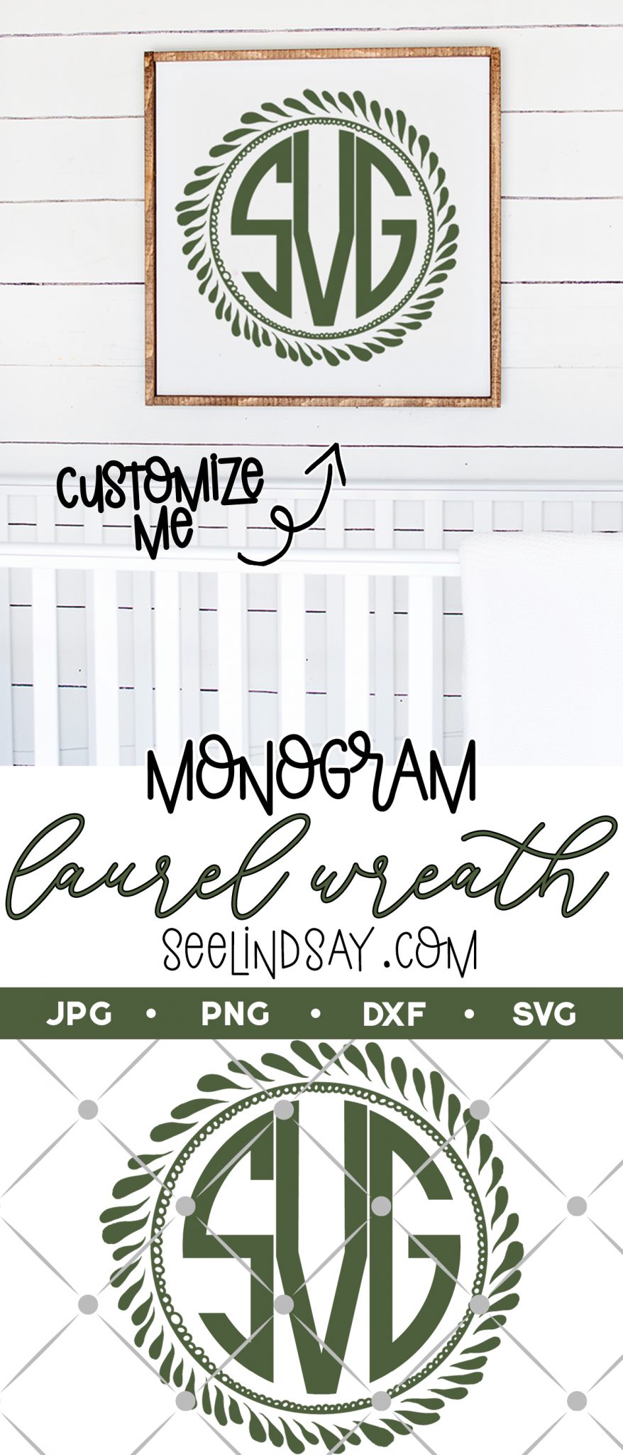 Be sure to visit your favorite monogram SVG and download it from that blog. This free monogram wreath SVG looks great for a farmhouse feel and can be personalized using the Round Monogram font from dafont.com that I linked to above in the supply list.